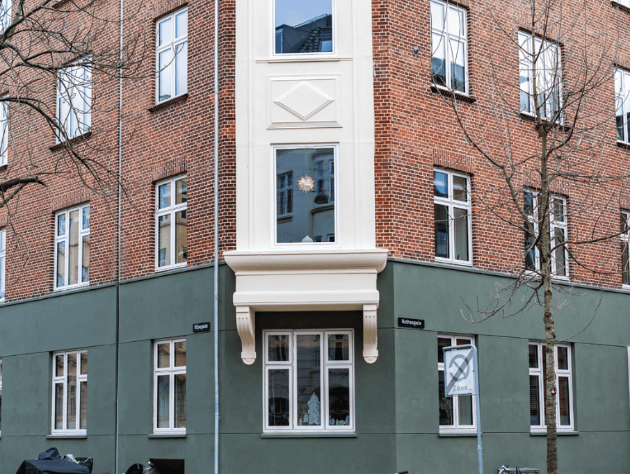 Andelsforeningens oprindelige vinduer og udvendige døre har undergået en malerbehandling på udvendig side inkl. kant og fals. Vi rådgiver desuden andelsforeningen omkring løbende vedligehold af tag og facader.